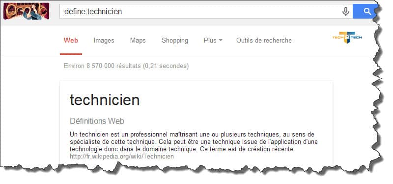 Google peut également vous servir de dictionnaire. Vous ne connaissez pas un mot ? Utiliser la syntaxe « Define: » pour connaitre la définition du mot en question.